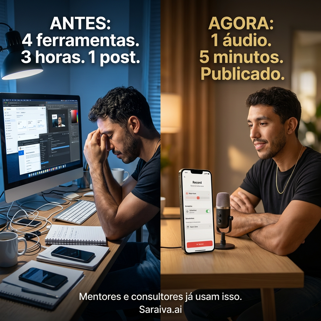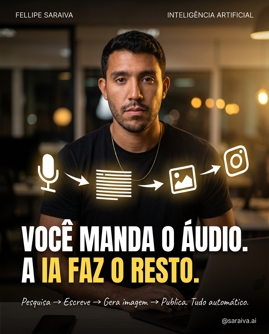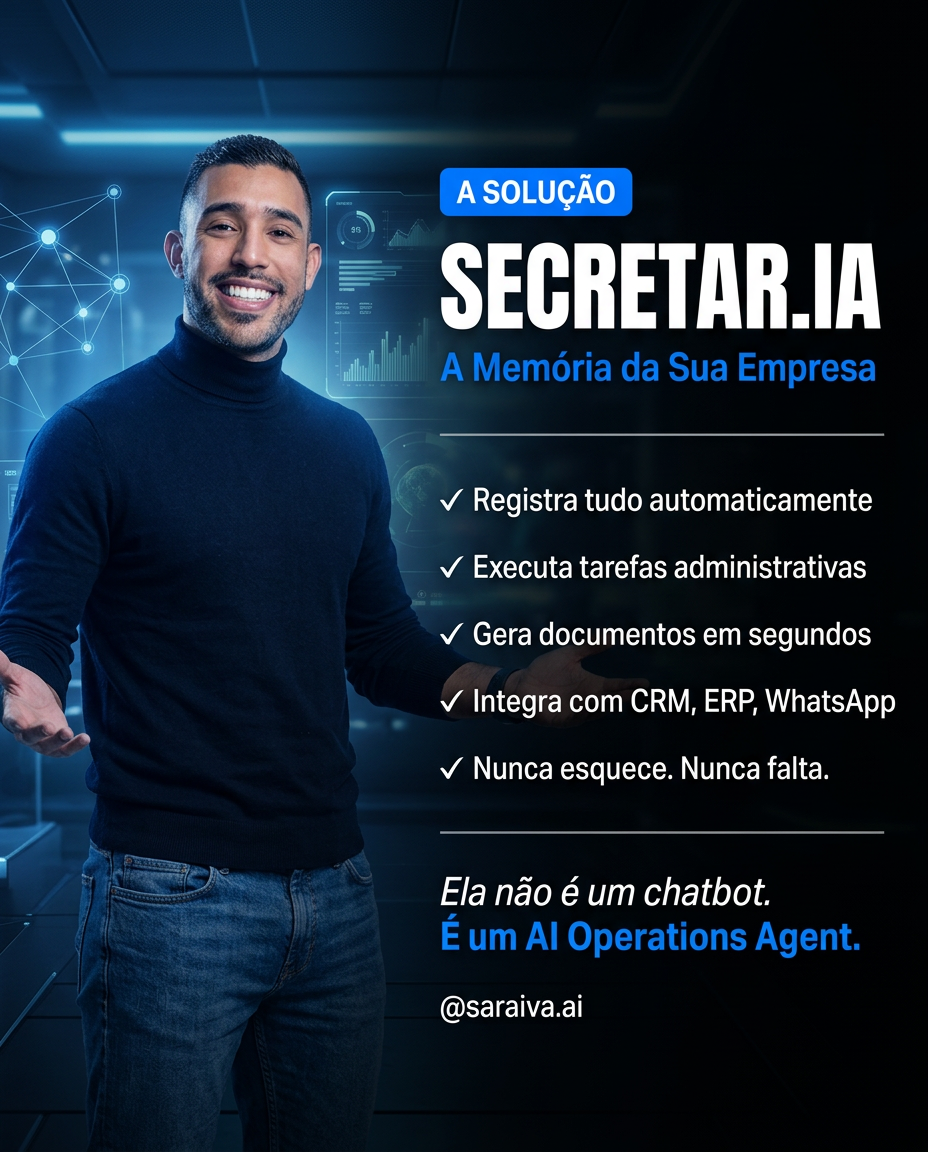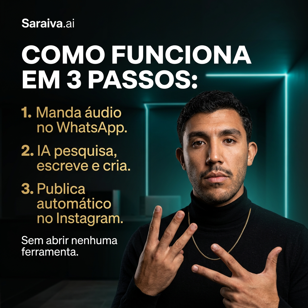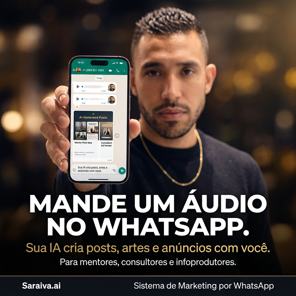'QUER SUBSTITUIR TODAS AS FERRAMENTAS POR 1 ÁUDIO?' Gold: 'Comenta SECRETARIA aqui embaixo.' Small white: 'Saraiva.ai — Sistema de Marketing por WhatsApp.' Large white pill button at bottom: '👇 SECRETARIA'. Square 1080x1080px.:sec_car_06.jpg