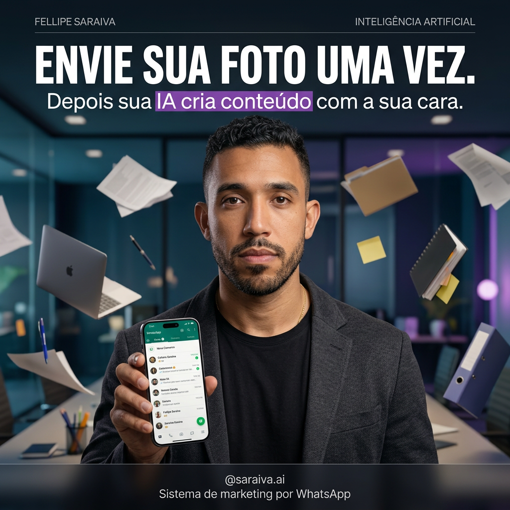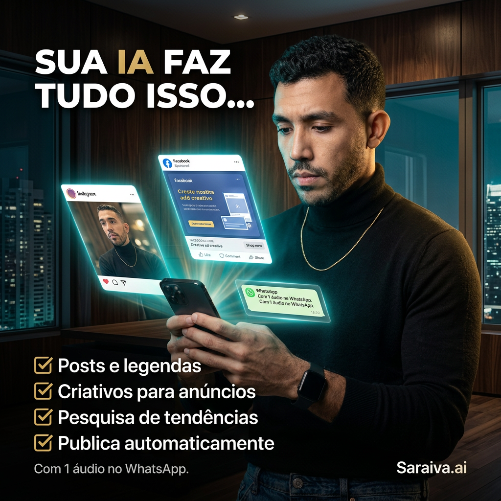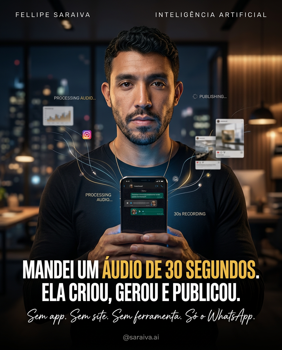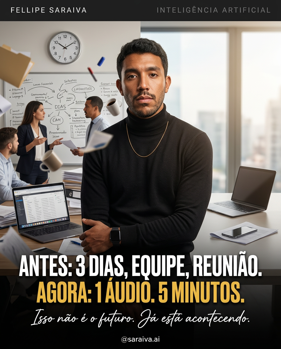 'QUER SUBSTITUIR TODAS AS FERRAMENTAS POR 1 ÁUDIO?' Gold: 'Comenta SECRETARIA aqui embaixo.' Small white: 'Saraiva.ai — Sistema de Marketing por WhatsApp.' Large white pill button at bottom: '👇 SECRETARIA'. Square 1080x1080px.:sec_car_06.jpg
